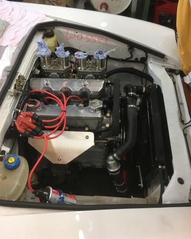 Nachdem irgendwann letztes Jahr alles am Motor fertig war, haben mein Schrauberkollege und ich vor Weihnachten Kühlwasser aufgefüllt!