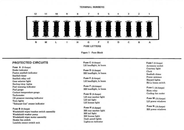 1980-1981 Fiat Spider Fuse Data