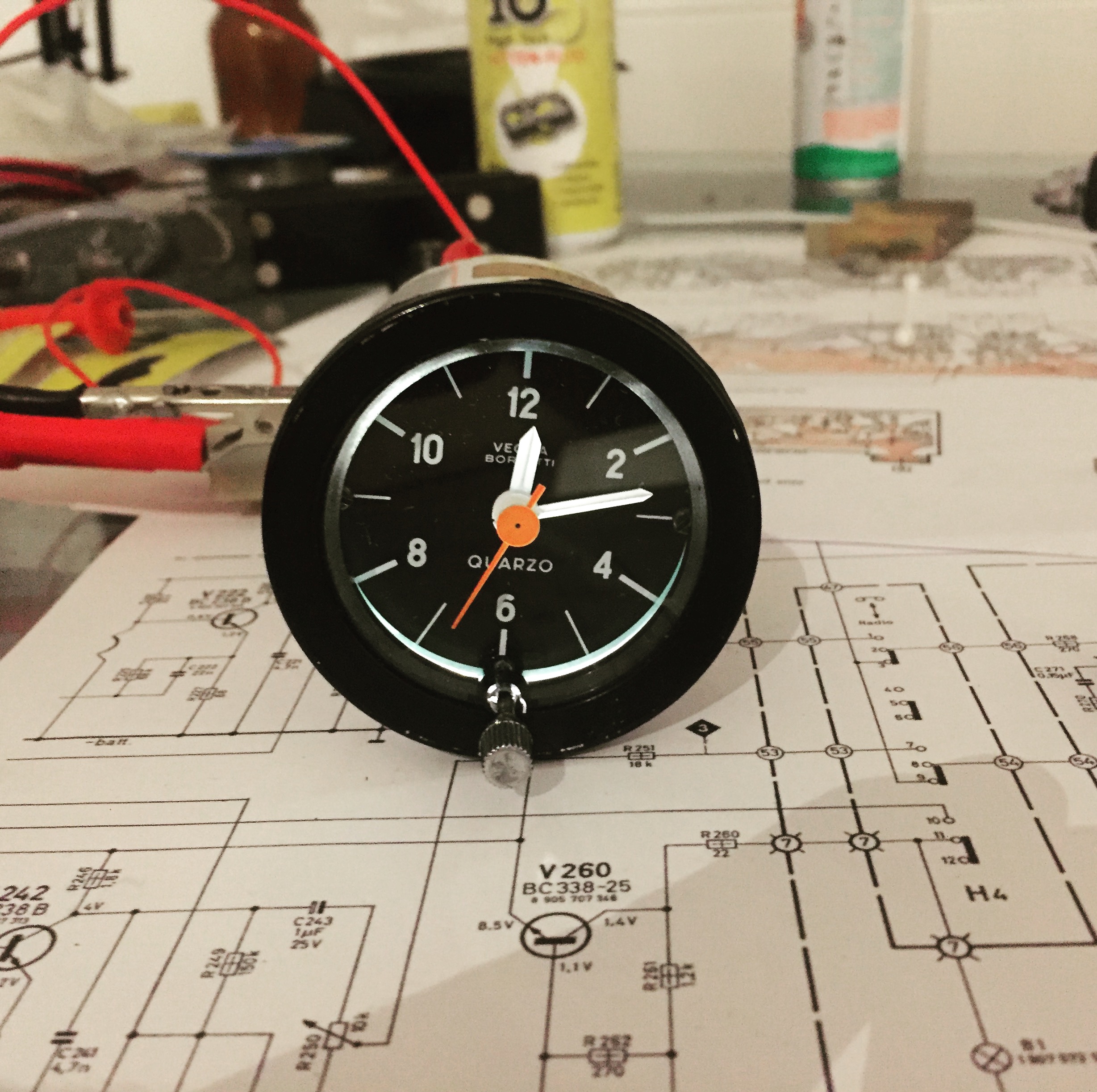im Zuge der Recherche zu Möglichkeiten der Reperatur bin ich darauf gestoßen, dass es vielleicht auch ganz charmant sein könnte, eine Batterieanzeige statt der Uhr einzubauen. Die Uhrzeit habe ich ehrlichgesagt an der Hand oder auf dem Handy, zusätzlich verdeckt das lenkrad sowieso die direkte uneingeschränkte Sicht auf die Uhr.