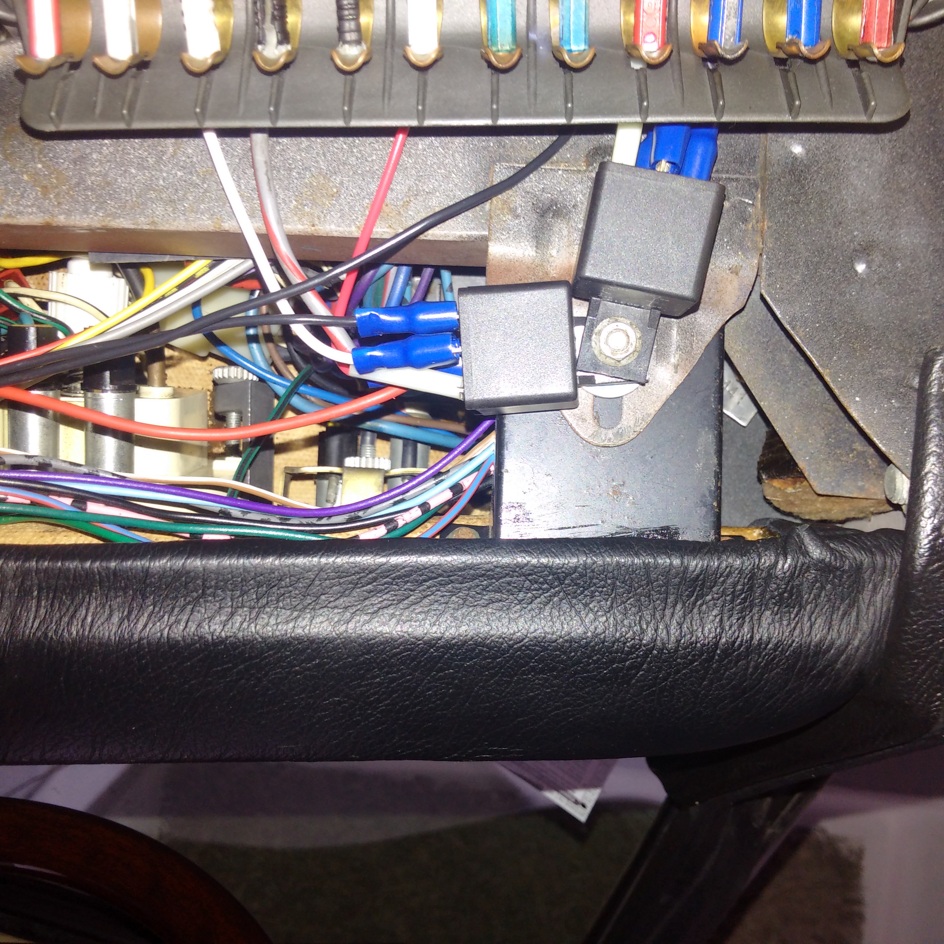 so heute habe auf Relaisschaltung umgebaut. Im Anhang ein Bild. Da sieht man, dass man unmittelbar im Sicherungskastennähe die Relais platzieren kann. Das Licht ist nun merklich heller und auch die Scheinwerfer Streuscheiben sind jetzt wärmer. Tolles Ergebnis. Umbauzeit mit crimpen und stecken ca. 40 Minuten. Vielleicht werde ich noch eine schönere Relaishalterung an diesem Gewinde befestigen und die Relais darauf platzieren.